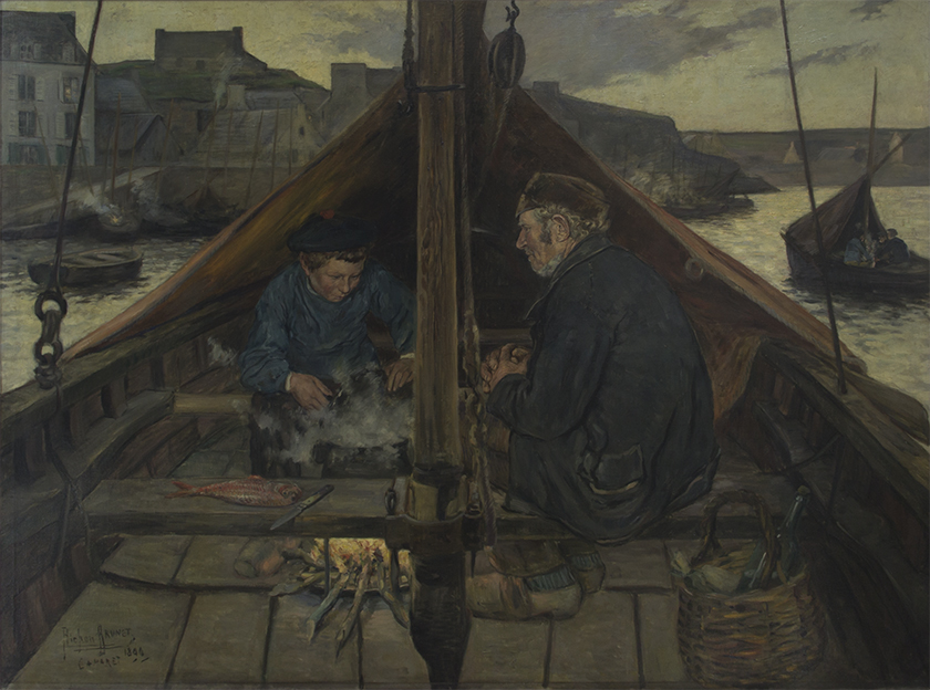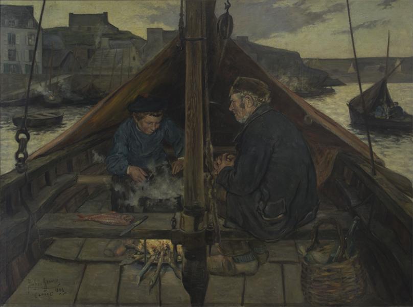 Ricardo Richon-Brunet. Pescadores en descanso. 1899. Óleo sobre tela, 154 cm x 200 cm. Surdoc 2-1434. Museo Nacional de Bellas Artes. Fotografía: Eloísa Ide.