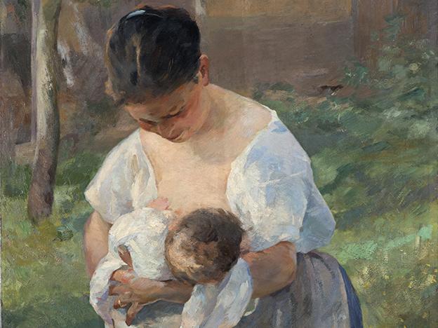 Alfred Roll. La nodriza. Óleo sobre tela, 158 cm x 77 cm. Surdoc 2-2013. Museo Nacional de Bellas Artes. Fotografía: Darío Tapia.