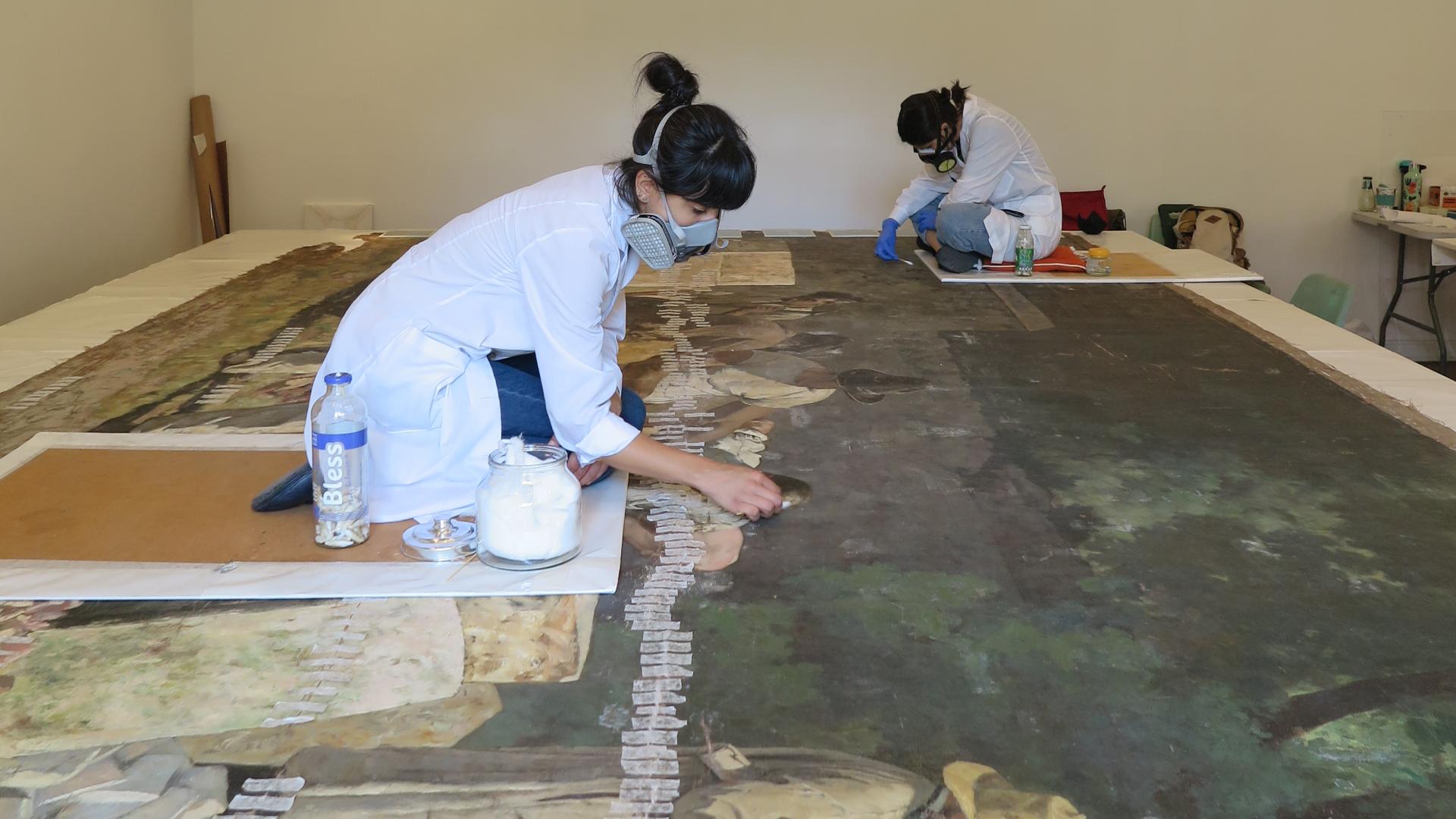 Su intervención fue llevada a cabo por un equipo de siete conservadoras y restauradoras coordinadas por Mónica Pérez Silva (CNCR) y María José Escudero Maturana (MNBA), quienes trabajaron de manera conjunta y coordinada con las Unidades de Documentación Visual e Imagenología y la Unidad de Ciencias de la Conservación del (CNCR).