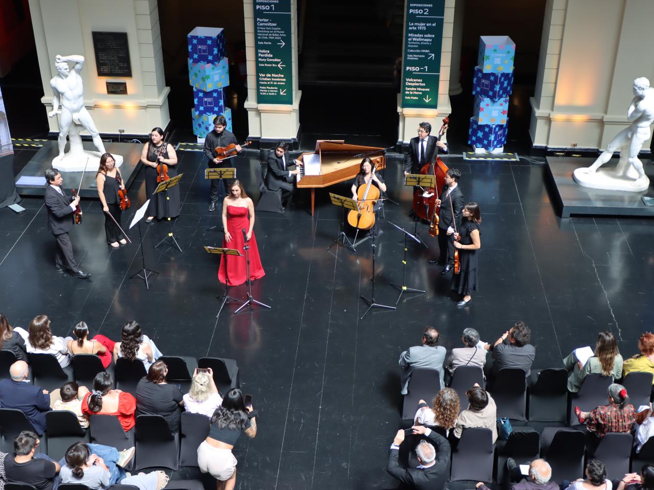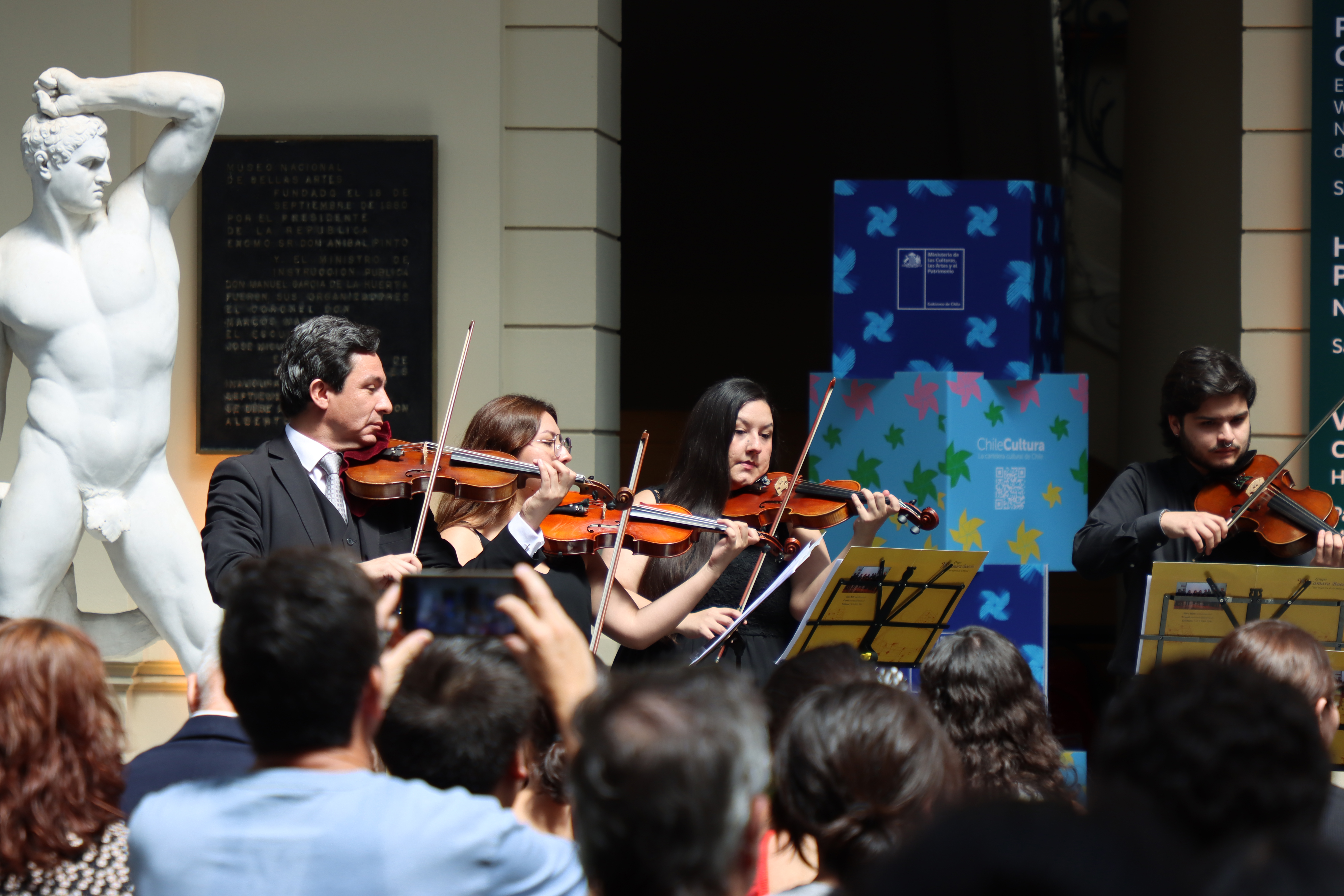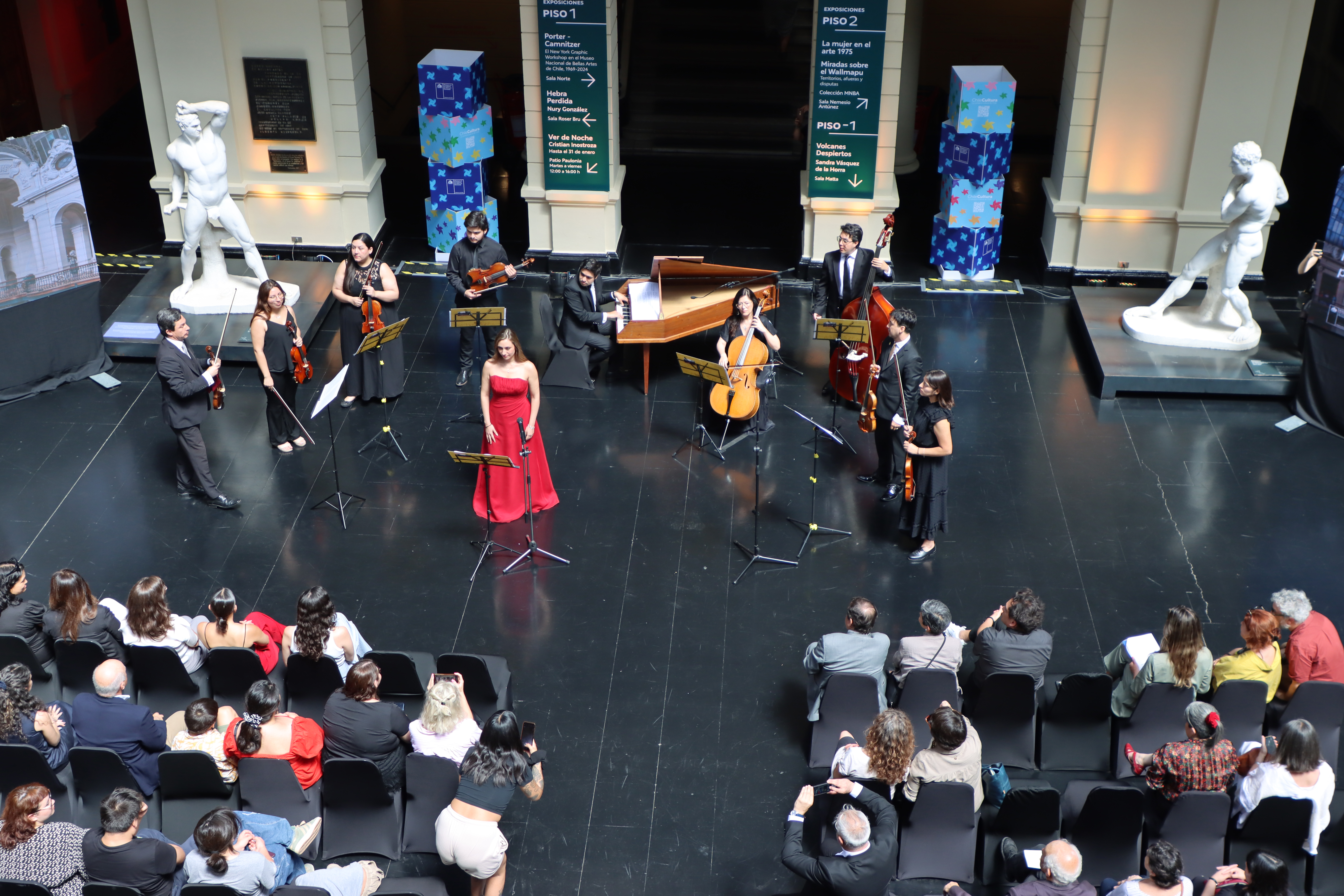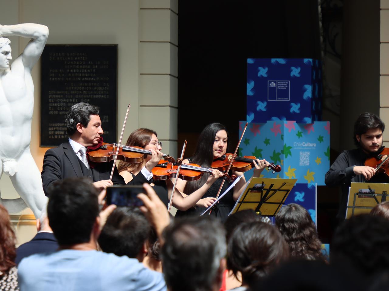 La ceremonia de entrega de esta primera etapa de conservación consideró el disfrute de la apreciación arquitectónica con la interpretación de un concierto por el Grupo Cámara Boecio. Antecedido por las palabras oficiales de la ministra de las Culturas, las Artes y el Patrimonio, Carolina Arredondo Marzán y de la directora del MNBA, Varinia Brodsky; quienes transmitieron la satisfacción por la labor mancomunada de diversos equipos técnicos para la excelencia de ejecución de los trabajos de restauración.